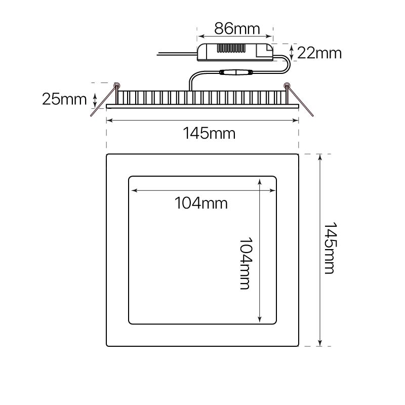 DOWNLIGHT LED SLIM CUADRADO BLANCO 12W - 3200K